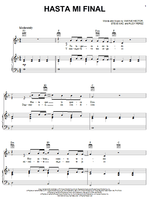 Download or print Il Divo Hasta Mi Final sheet music, chords and digital score arranged for Piano, Vocal & Guitar Chords (Right-Hand Melody). This Pop score includes 5 page(s).
