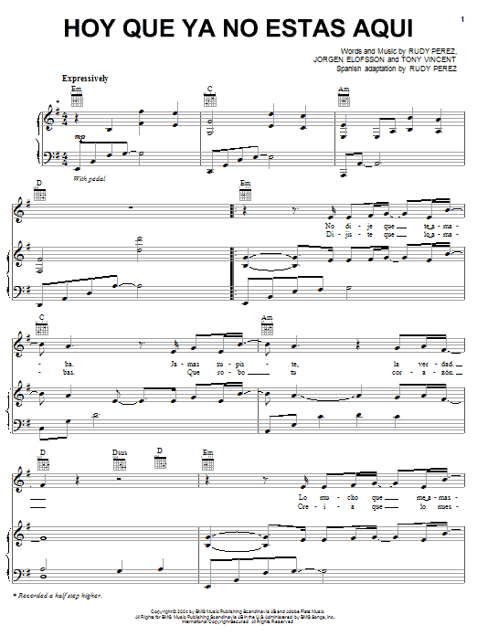 Quick facts Hoy Que Ya No Estas Aqui about digital sheet music