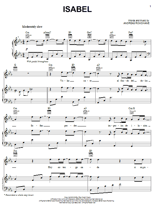 Download or print Il Divo Isabel sheet music, chords and digital score arranged for Piano, Vocal & Guitar Chords (Right-Hand Melody). This Pop score includes 7 page(s).