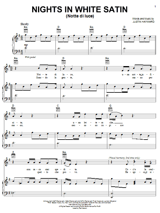 Quick facts Nights In White Satin (Notte Di Luce) about digital sheet music