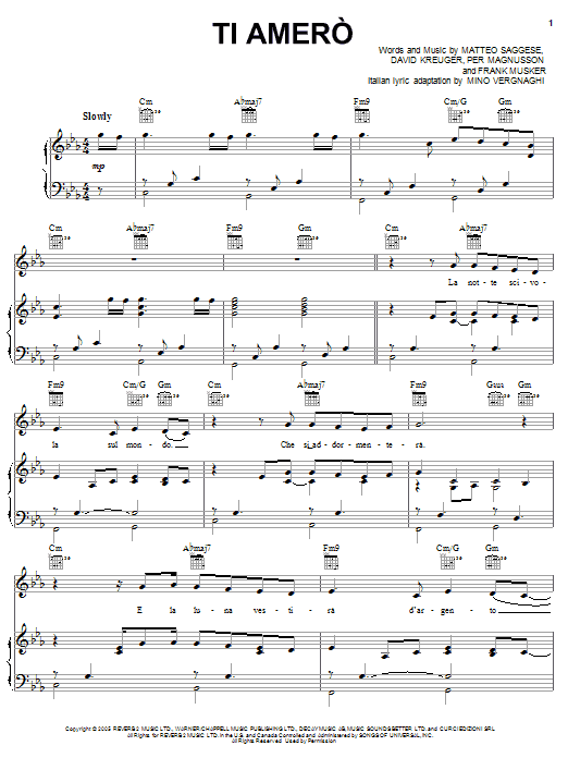 Download or print Il Divo Ti Amero sheet music, chords and digital score arranged for Piano, Vocal & Guitar Chords (Right-Hand Melody). This Classical score includes 7 page(s).