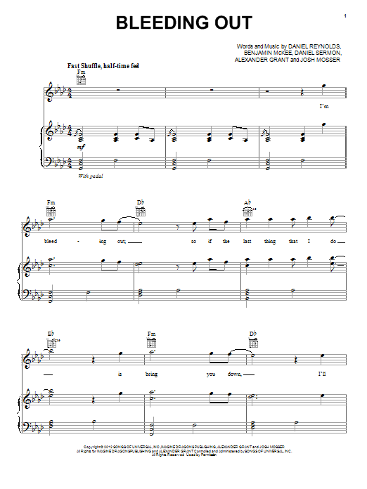 Download or print Imagine Dragons Bleeding Out sheet music, chords and digital score arranged for Guitar Tab. This Alternative score includes 6 page(s).