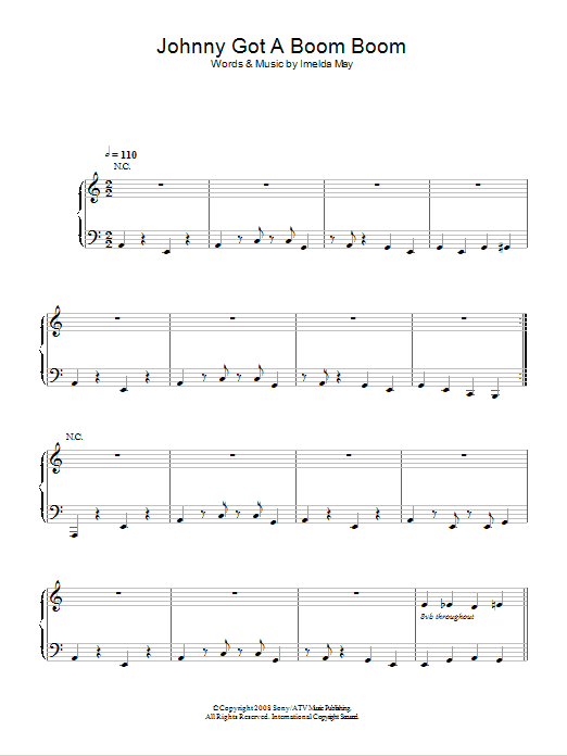 Download or print Imelda May Johnny Got A Boom Boom sheet music, chords and digital score arranged for Piano, Vocal & Guitar Chords. This Alternative score includes 7 page(s).