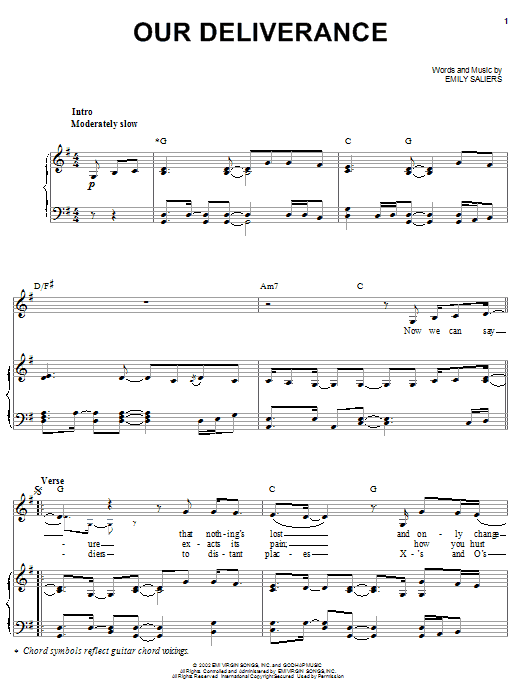 Download or print Indigo Girls Our Deliverance sheet music, chords and digital score arranged for Piano, Vocal & Guitar Chords (Right-Hand Melody). This Folk score includes 6 page(s).