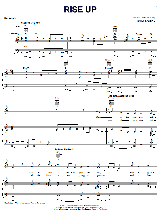 Download or print Indigo Girls Rise Up sheet music, chords and digital score arranged for Piano, Vocal & Guitar Chords (Right-Hand Melody). This Folk score includes 9 page(s).