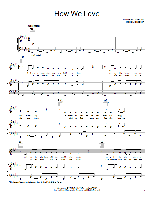 Download or print Ingrid Michaelson How We Love sheet music, chords and digital score arranged for Piano, Vocal & Guitar Chords (Right-Hand Melody). This Pop score includes 4 page(s).