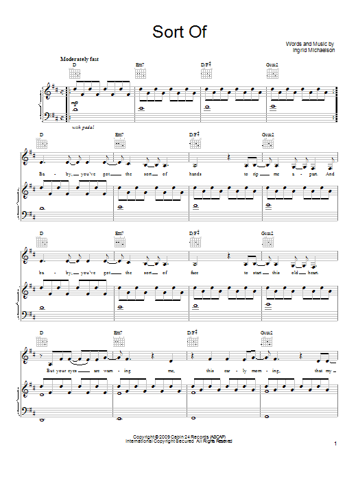 Download or print Ingrid Michaelson Sort Of sheet music, chords and digital score arranged for Piano, Vocal & Guitar Chords (Right-Hand Melody). This Pop score includes 7 page(s).
