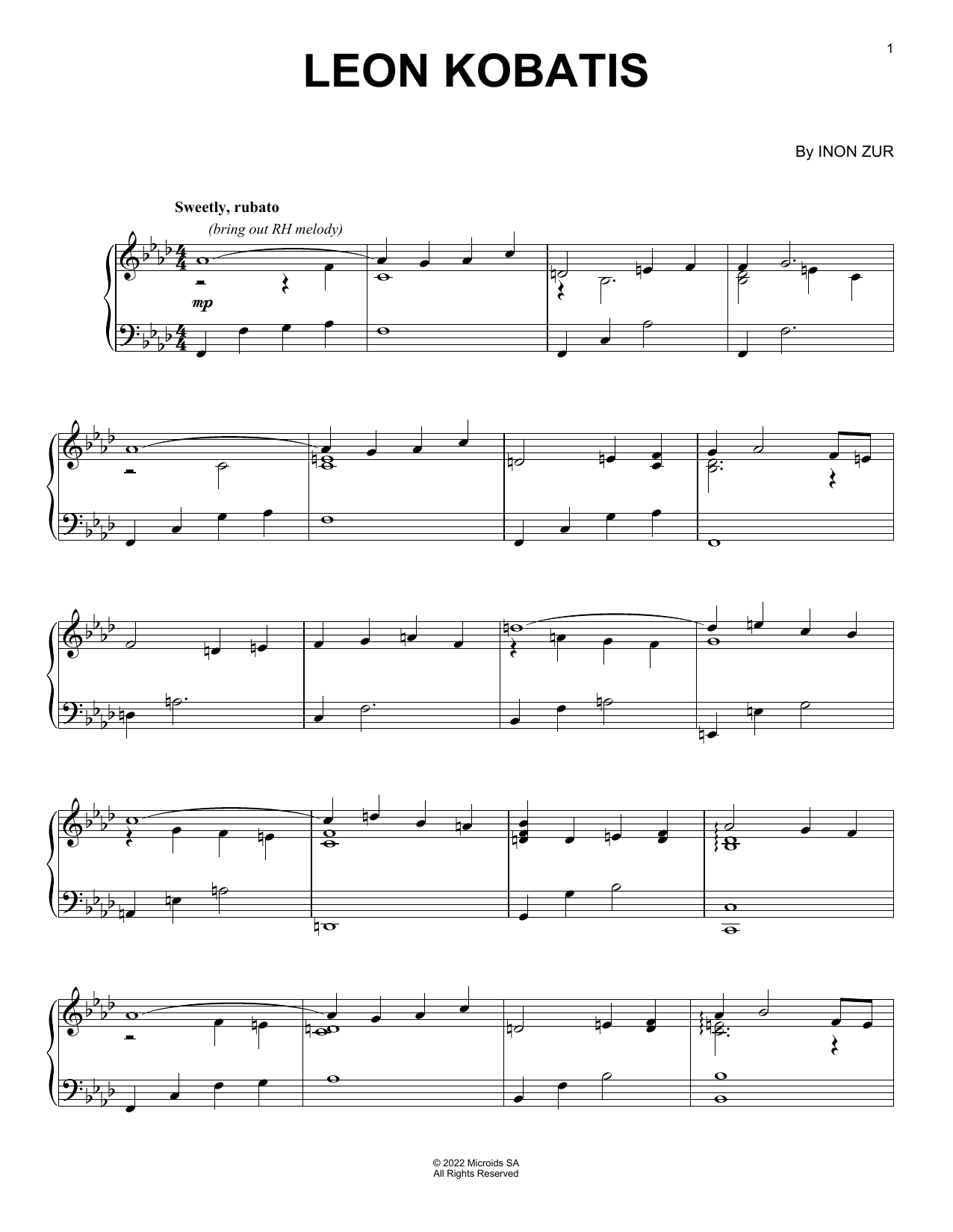 Download or print Inon Zur Leon Kobatis (from Syberia: The World Before) sheet music, chords and digital score arranged for Piano Solo. This Video Game score includes 3 page(s).