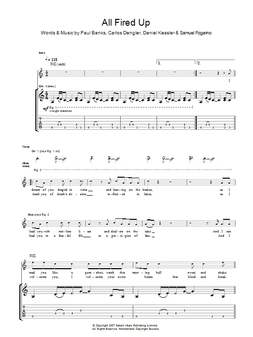 Download or print Interpol All Fired Up sheet music, chords and digital score arranged for Guitar Tab. This Rock score includes 5 page(s).