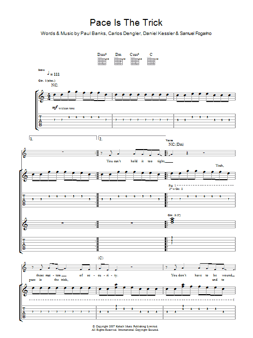 Download or print Interpol Pace Is The Trick sheet music, chords and digital score arranged for Guitar Tab. This Rock score includes 7 page(s).