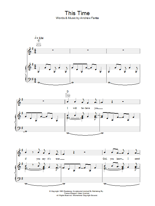 Download or print INXS This Time sheet music, chords and digital score arranged for Piano, Vocal & Guitar Chords. This Pop score includes 5 page(s).