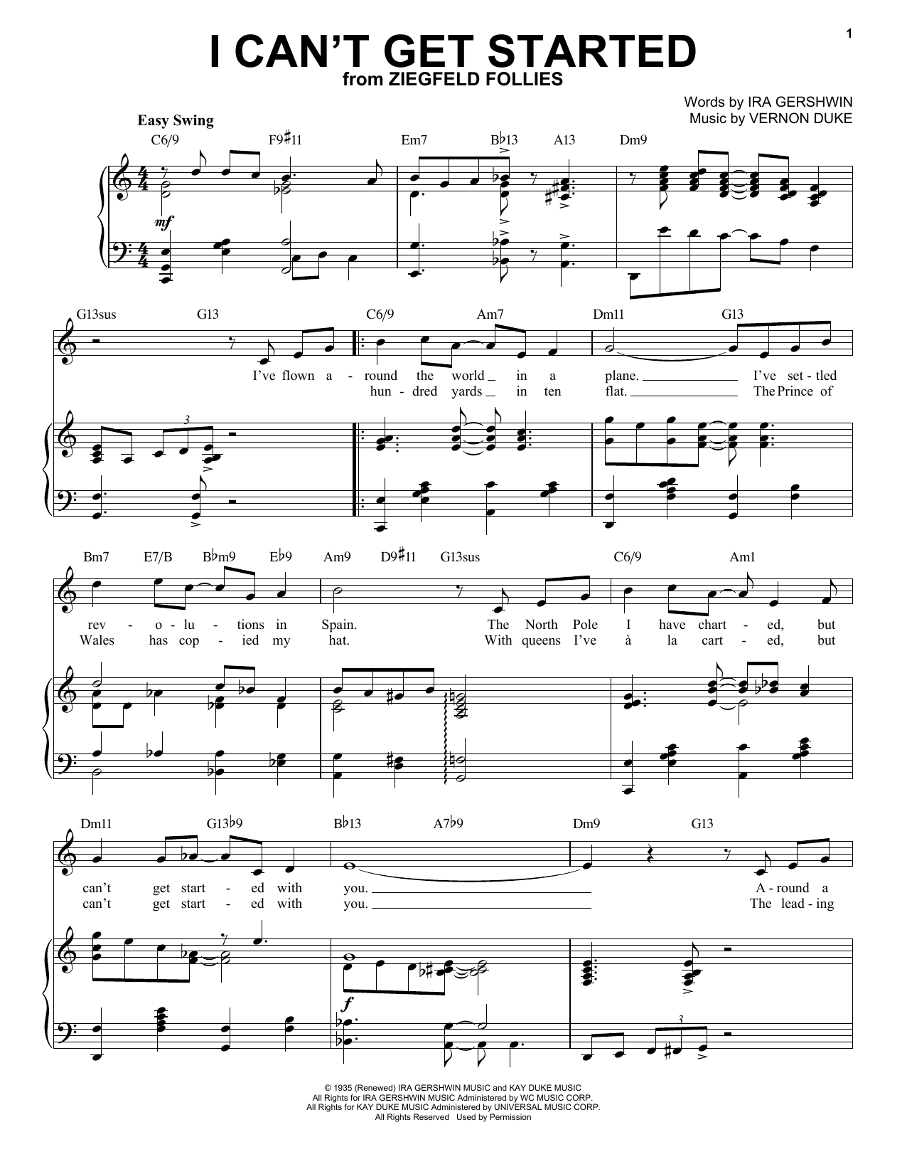 Download or print Ira Gershwin and Vernon Duke I Can't Get Started [Jazz version] (arr. Brent Edstrom) sheet music, chords and digital score arranged for Piano & Vocal. This Jazz score includes 3 page(s).