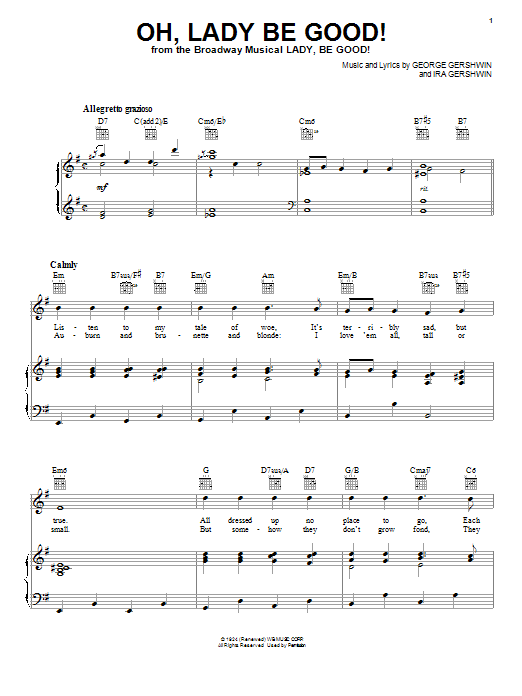 Download or print Ira Gershwin Oh, Lady Be Good! sheet music, chords and digital score arranged for Easy Guitar Tab. This Jazz score includes 2 page(s).