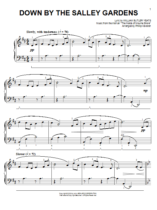 Quick facts Down By The Sally Gardens (arr. Phillip Keveren) about digital sheet music