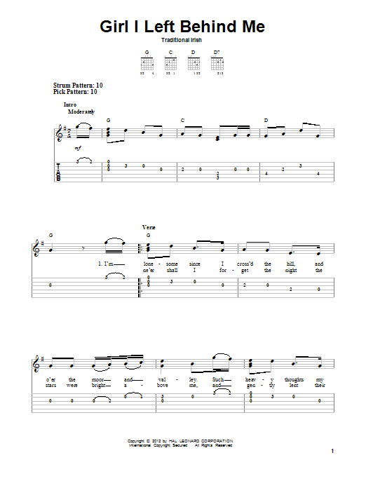 Download or print Traditional Irish Girl I Left Behind Me sheet music, chords and digital score arranged for Easy Guitar Tab. This Folk score includes 2 page(s).
