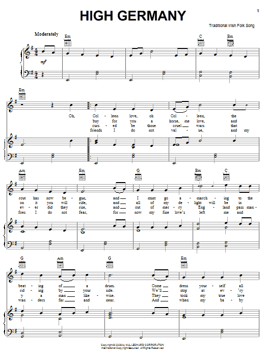 Download or print Irish Folksong High Germany sheet music, chords and digital score arranged for Piano, Vocal & Guitar Chords (Right-Hand Melody). This Folk score includes 2 page(s).