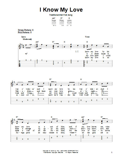 Download or print Traditional Irish Folk Song I Know My Love sheet music, chords and digital score arranged for Easy Guitar Tab. This Folk score includes 2 page(s).