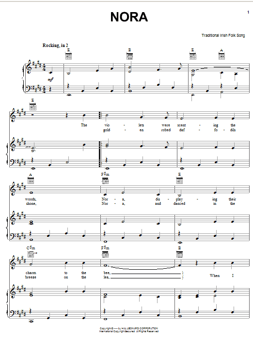 Download or print Irish Folksong Nora sheet music, chords and digital score arranged for Piano, Vocal & Guitar Chords (Right-Hand Melody). This Folk score includes 3 page(s).