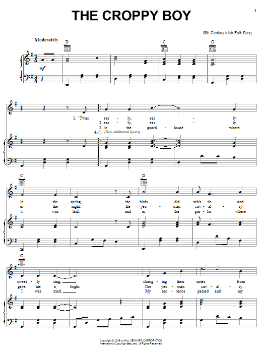 Quick facts The Croppy Boy about digital sheet music