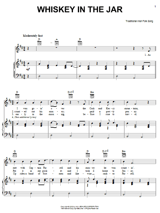 Download or print Irish Folksong Whiskey In The Jar sheet music, chords and digital score arranged for Easy Piano. This Irish score includes 2 page(s).