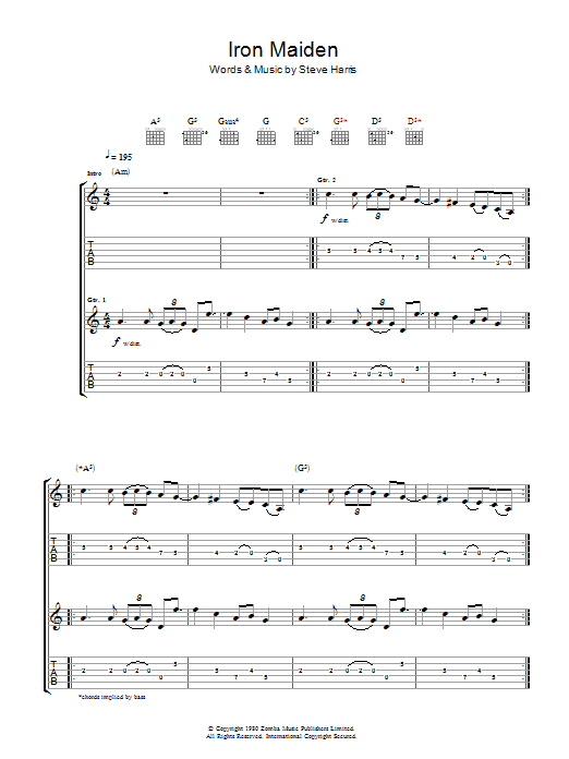Download or print Iron Maiden Iron Maiden sheet music, chords and digital score arranged for Bass Guitar Tab. This Metal score includes 7 page(s).