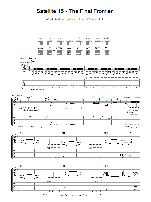 Download or print Iron Maiden Satellite 15 - The Final Frontier sheet music, chords and digital score arranged for Guitar Tab. This Metal score includes 16 page(s).