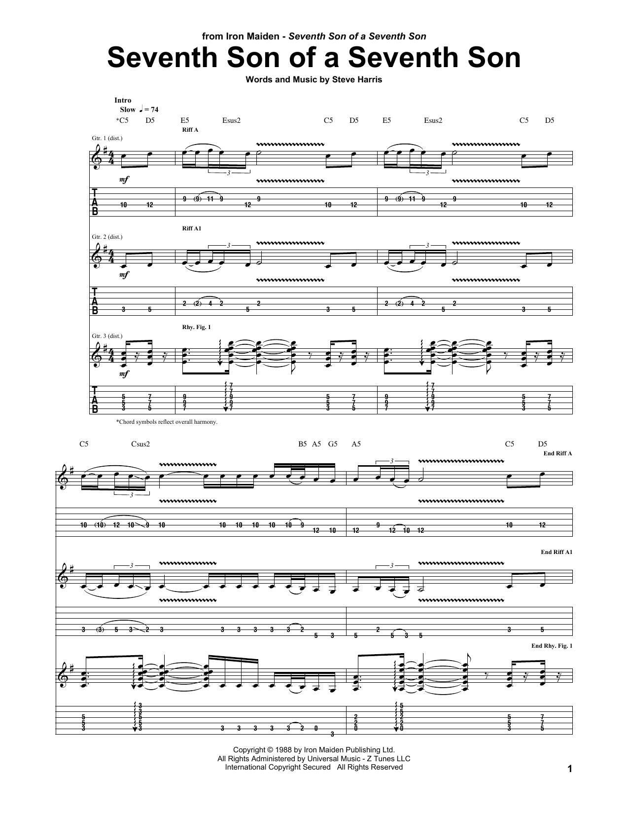 Download or print Iron Maiden Seventh Son Of A Seventh Son sheet music, chords and digital score arranged for Guitar Tab. This Metal score includes 33 page(s).
