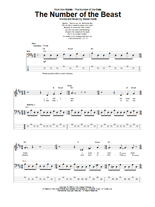 Download or print Iron Maiden The Number Of The Beast sheet music, chords and digital score arranged for Guitar Tab (Single Guitar). This Metal score includes 10 page(s).