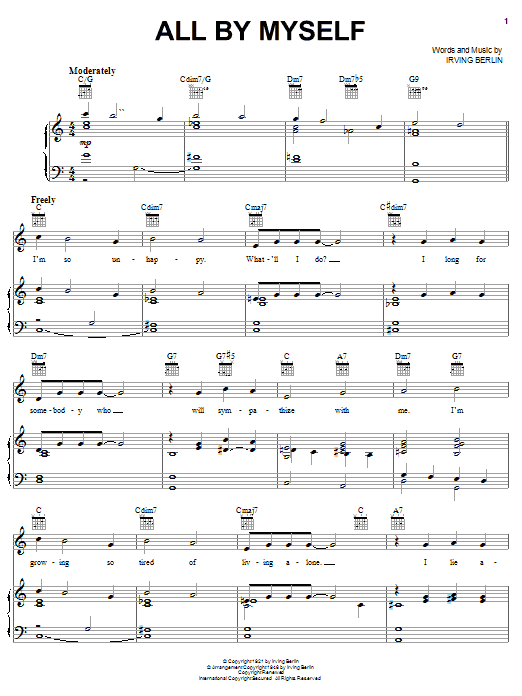 Download or print Irving Berlin All By Myself sheet music, chords and digital score arranged for Solo Guitar. This Jazz score includes 2 page(s).