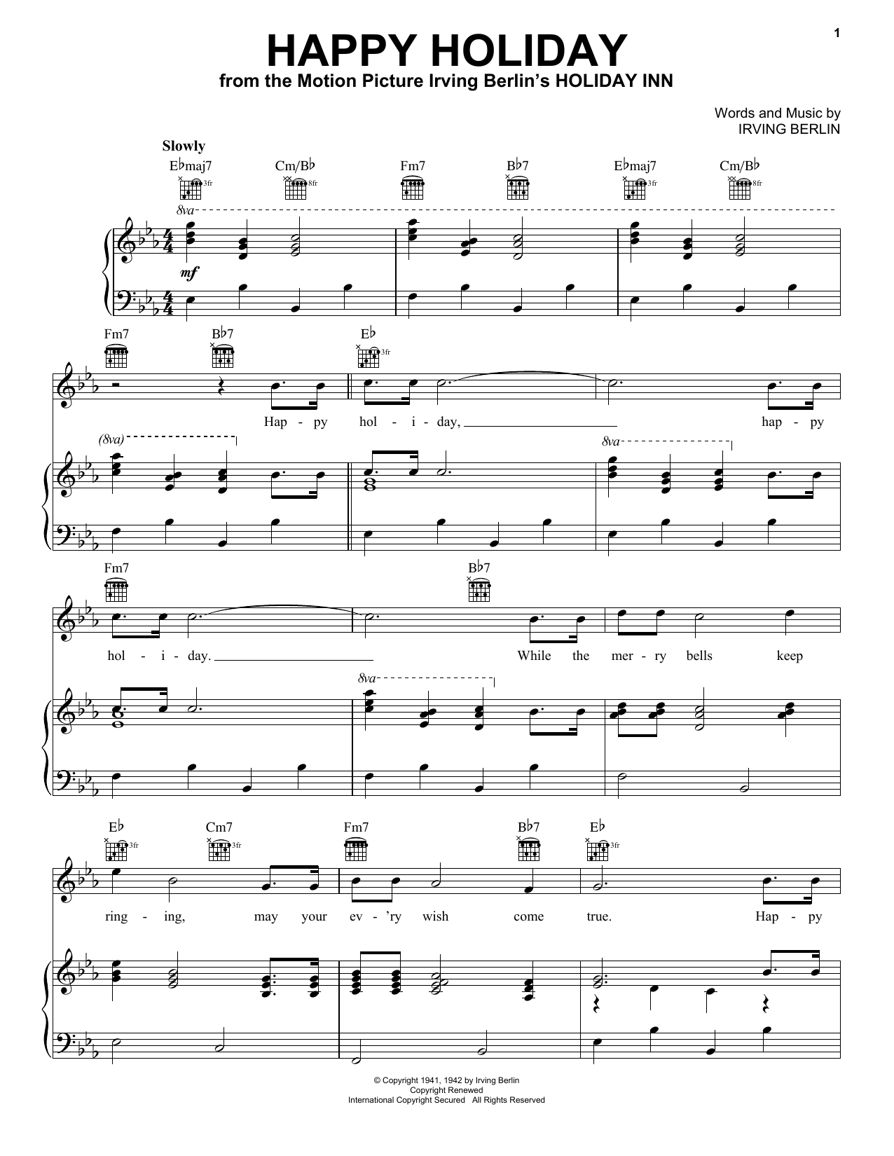 Download or print Irving Berlin Happy Holiday sheet music, chords and digital score arranged for Lead Sheet / Fake Book. This Christmas score includes 1 page(s).