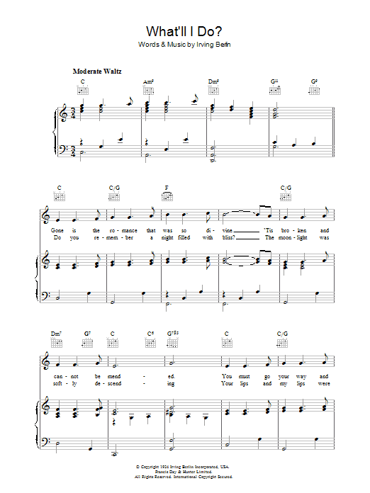 Download or print Irving Berlin What'll I Do sheet music, chords and digital score arranged for Piano Solo. This Jazz score includes 2 page(s).