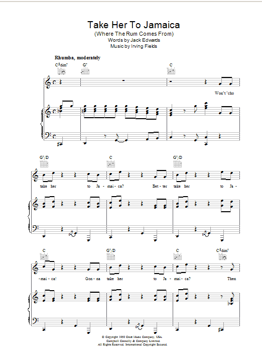 Quick facts Take Her To Jamaica (Where The Rum Come From) about digital sheet music