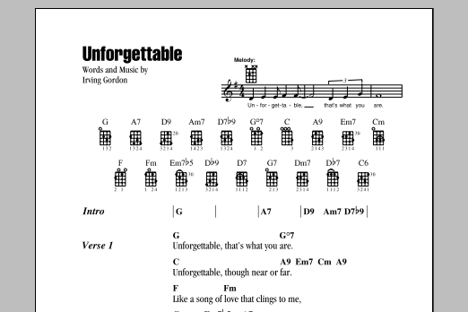 Download or print Irving Gordon Unforgettable sheet music, chords and digital score arranged for Easy Piano. This Children score includes 4 page(s).