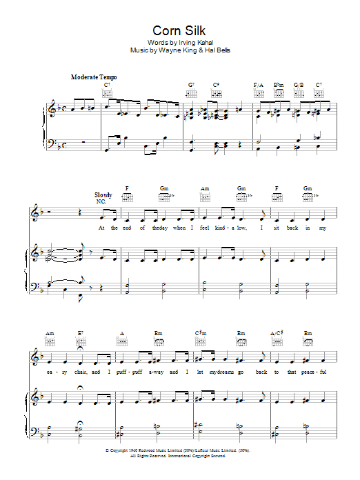 Download or print Irving Kahal Corn Silk sheet music, chords and digital score arranged for Piano, Vocal & Guitar Chords. This Standards score includes 5 page(s).