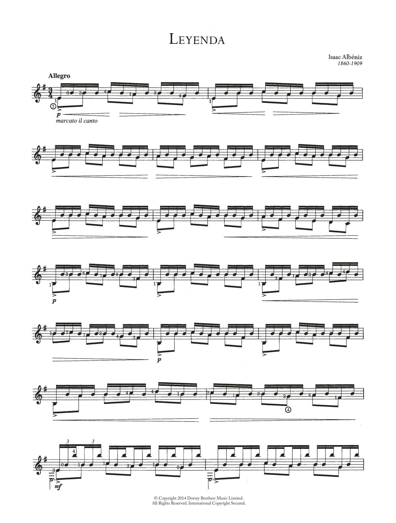 Download or print Isaac Albéniz Leyenda (Asturias) sheet music, chords and digital score arranged for Solo Guitar. This Classical score includes 6 page(s).