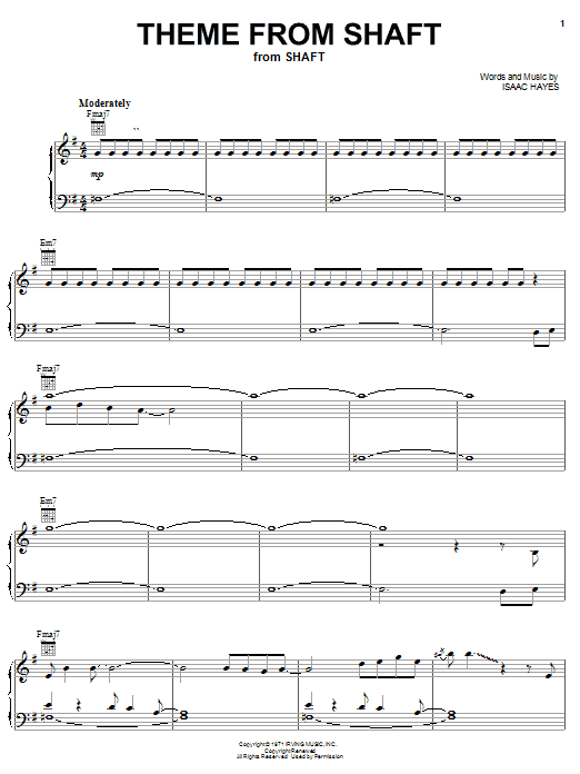 Download or print Isaac Hayes Theme From Shaft sheet music, chords and digital score arranged for Guitar Chords/Lyrics. This Pop score includes 2 page(s).
