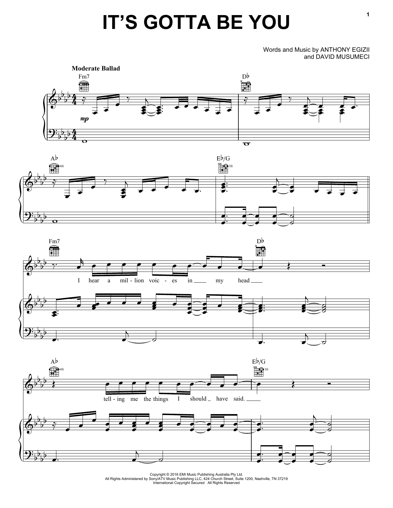 Download or print Isaiah It's Gotta Be You sheet music, chords and digital score arranged for Piano, Vocal & Guitar Chords (Right-Hand Melody). This Pop score includes 7 page(s).