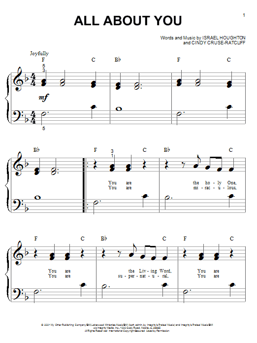 Download or print Lakewood Church All About You sheet music, chords and digital score arranged for Big Note Piano. This Children score includes 5 page(s).