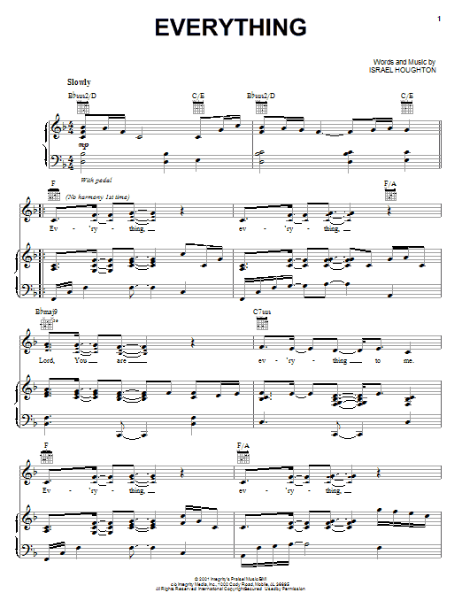 Download or print Lakewood Church Everything sheet music, chords and digital score arranged for Piano, Vocal & Guitar Chords (Right-Hand Melody). This Christian score includes 5 page(s).