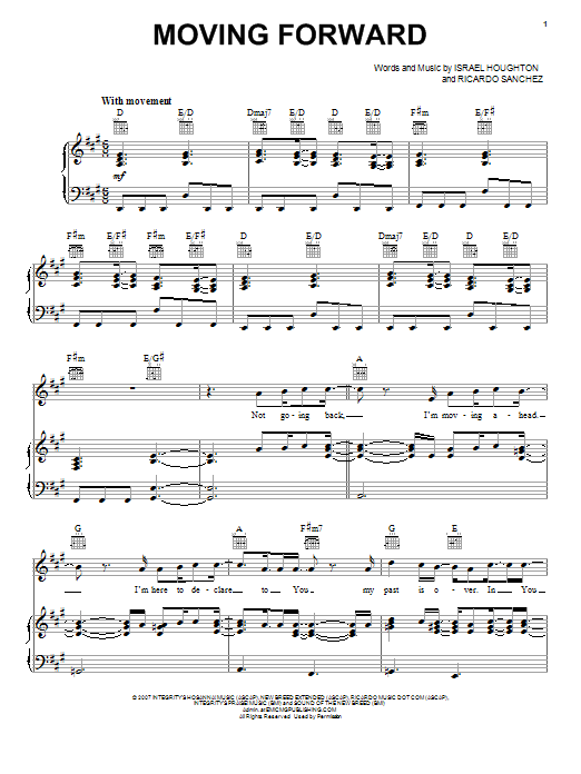 Download or print Israel Houghton Moving Forward sheet music, chords and digital score arranged for Piano, Vocal & Guitar Chords (Right-Hand Melody). This Christian score includes 8 page(s).