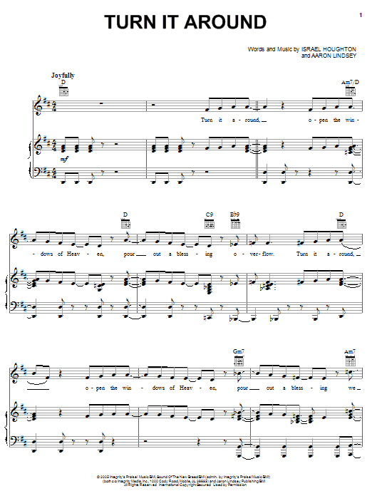 Download or print Israel Houghton Turn It Around sheet music, chords and digital score arranged for Piano, Vocal & Guitar Chords (Right-Hand Melody). This Christian score includes 13 page(s).
