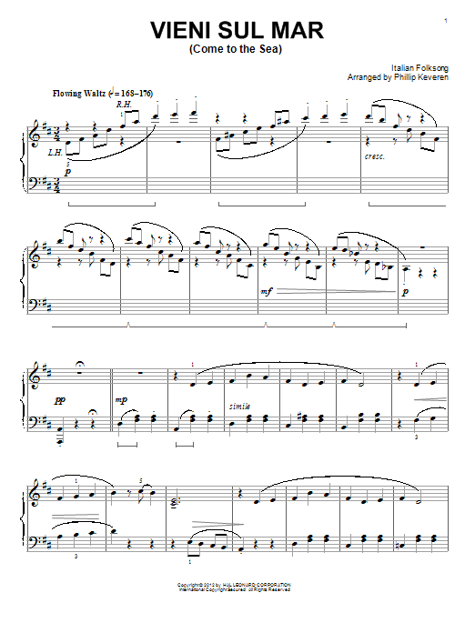 Quick facts Vieni Sul Mar (arr. Phillip Keveren) about digital sheet music