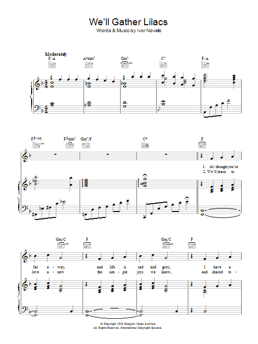 Download or print Ivor Novello We'll Gather Lilacs sheet music, chords and digital score arranged for Piano, Vocal & Guitar Chords (Right-Hand Melody). This Standards score includes 5 page(s).