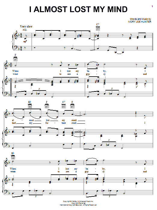 Download or print Ivory Joe Hunter I Almost Lost My Mind sheet music, chords and digital score arranged for Lead Sheet / Fake Book. This Pop score includes 2 page(s).