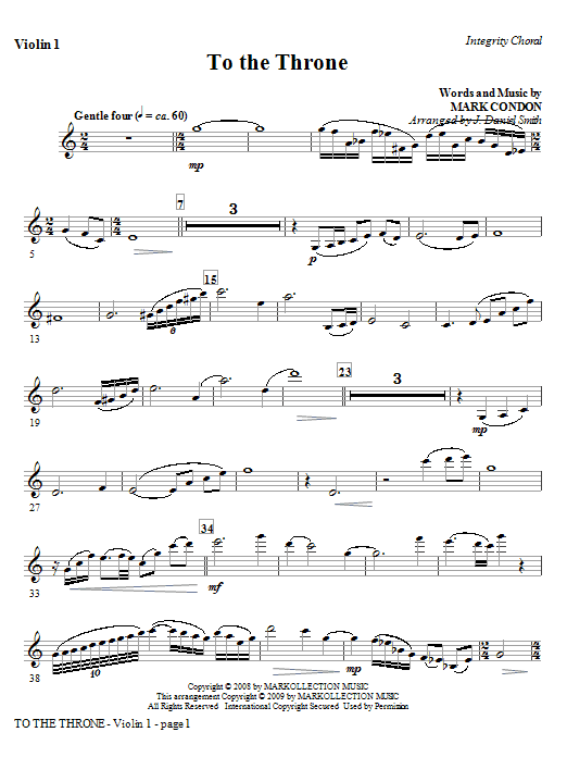 Download or print J. Daniel Smith To The Throne - Violin 2 sheet music, chords and digital score arranged for Choir Instrumental Pak. This Contemporary score includes 2 page(s).