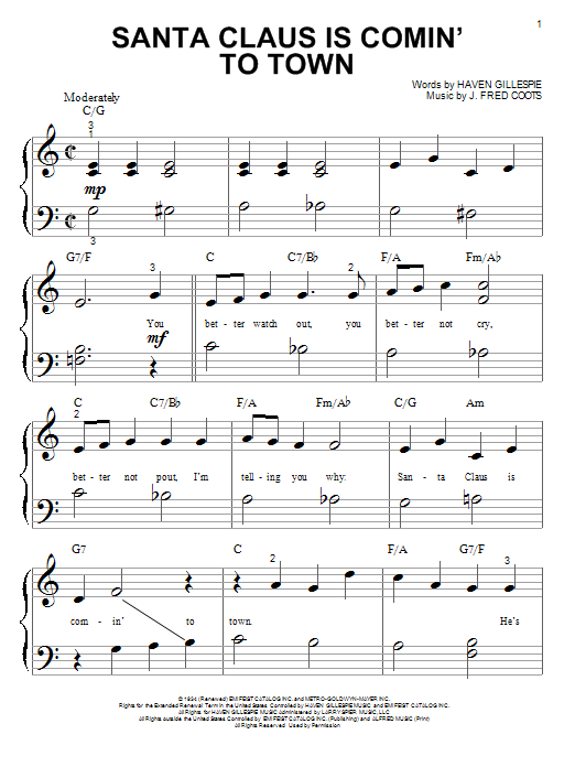 Download or print J. Fred Coots Santa Claus Is Comin' To Town sheet music, chords and digital score arranged for Accordion. This Children score includes 3 page(s).