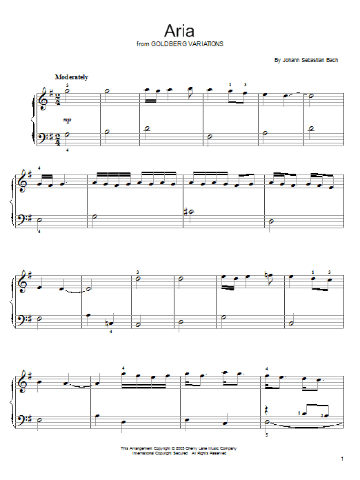 Download or print Johann Sebastian Bach Aria sheet music, chords and digital score arranged for Easy Piano. This Classical score includes 2 page(s).