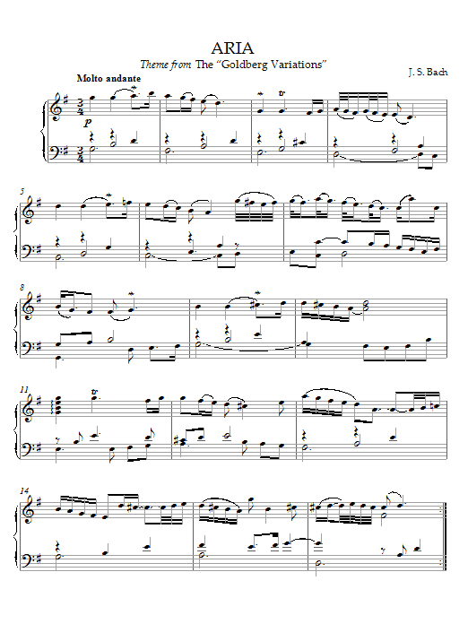 Download or print Bach Aria (Theme) sheet music, chords and digital score arranged for Piano Solo. This Pop score includes 2 page(s).