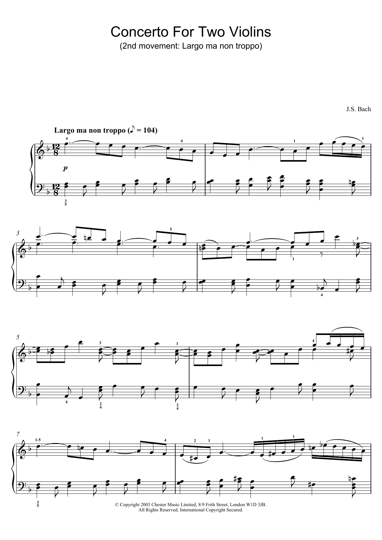 Quick facts Concerto for Two Violins (2nd Movement: Largo ma non Troppo) about digital sheet music