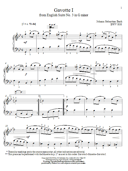 Quick facts Gavotte I, BWV 808 about digital sheet music